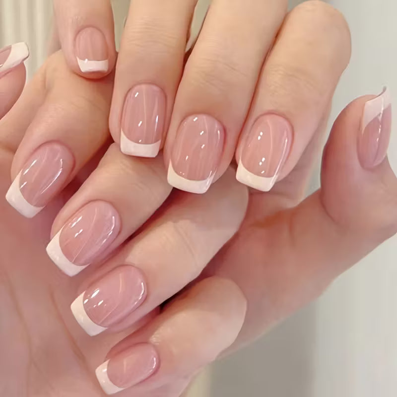 Color Tone: Nude, Pink Nail Shape: square shape Nail Length: short Nail Pattern: Pure color, Leaves Nail Finishes: Glossy Item...